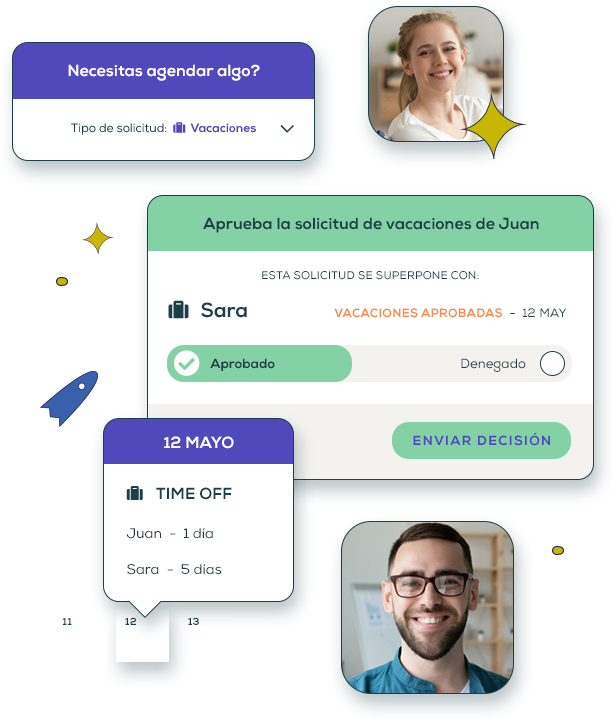 Delega aprobaciones: Deja que los jefes y gerentes aprueben las solicitudes de su equipos.